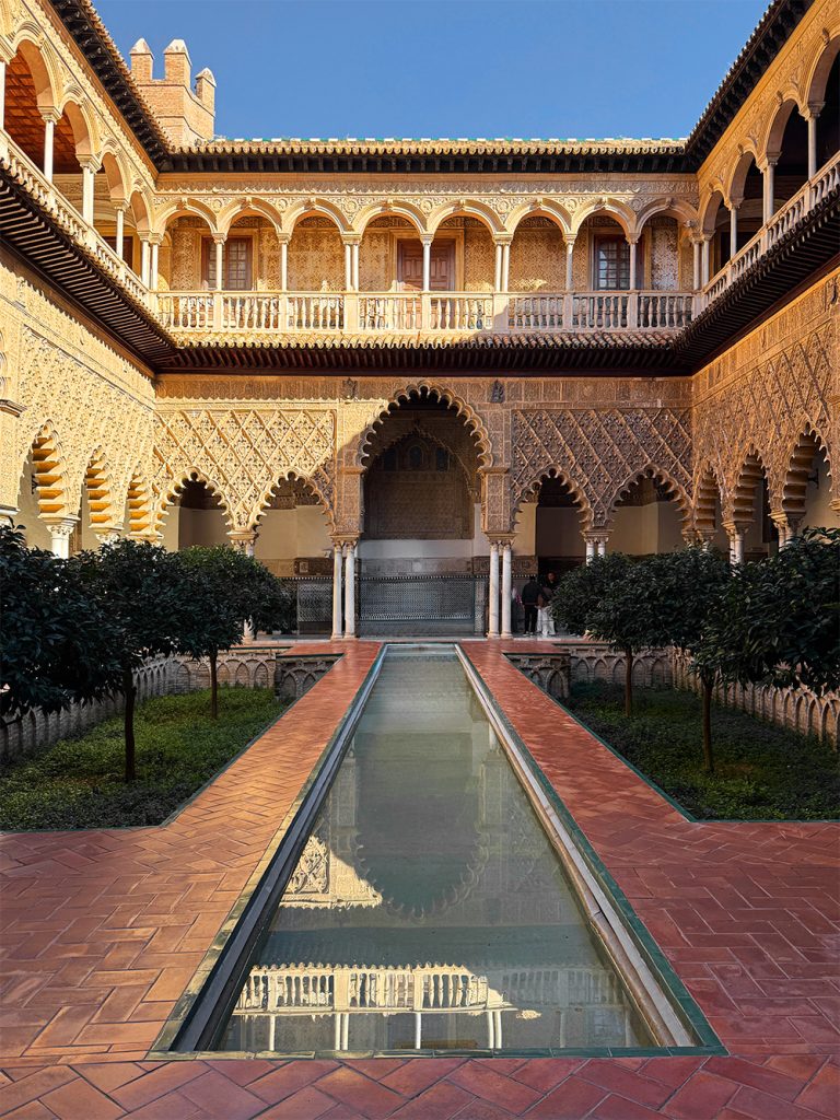 Kaum war die Sonne untergegangen, verwandeln sich die Gärten des Real Alcázar in ein buntes Leuchten: Farben tanzen zwischen…