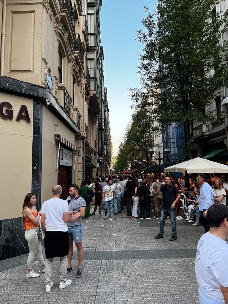Das Prinzip ist einfach: Man bestellt einen Wein oder ein Bier, nimmt sich ein Pintxo von der Theke – oder lässt sich warme Varianten direkt aus der Küche bringen – und zieht weiter zur nächsten Bar.