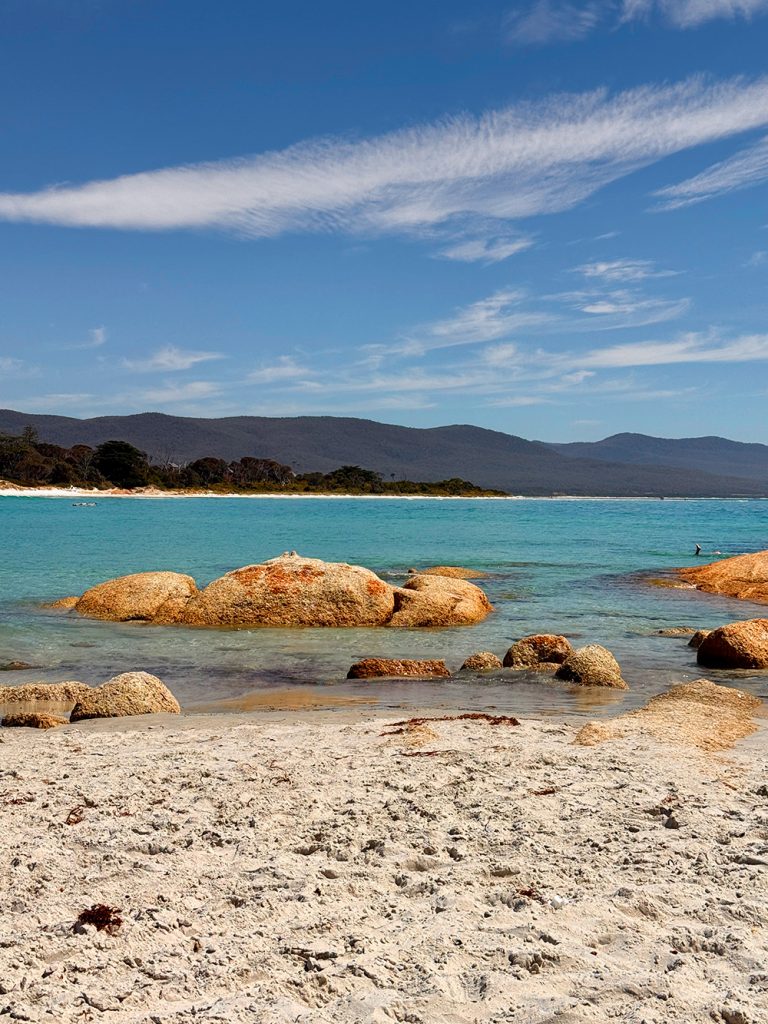 Bay of Fires & Redbill Beach: Traumstrände mit glasklarem Wasser, roten Felsen und absoluter Ruhe – perfekte Strandtage.