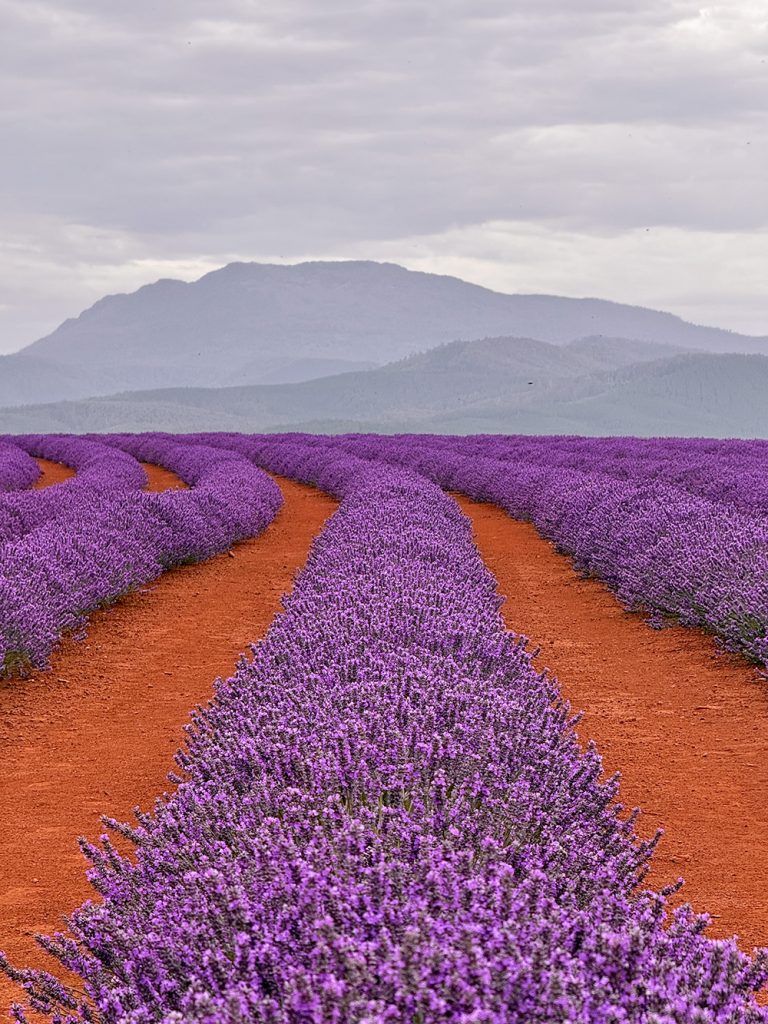 Nach dem Frühstück machen wir uns auf zur Bridestowe Estate Lavender Farm, die nur etwa fünf Minuten Fahrtzeit entfernt liegt. Der Eintritt kostet 20 Dollar pro Person. Dafür kann man sogar an einer Führung teilnehmen, ohne Aufpreis – was wir natürlich machen. Umso überraschter sind wir, dass das Lavendelfeld zwar voll mit Menschen ist, zur Tour aber nur vier weitere Personen dazukommen.