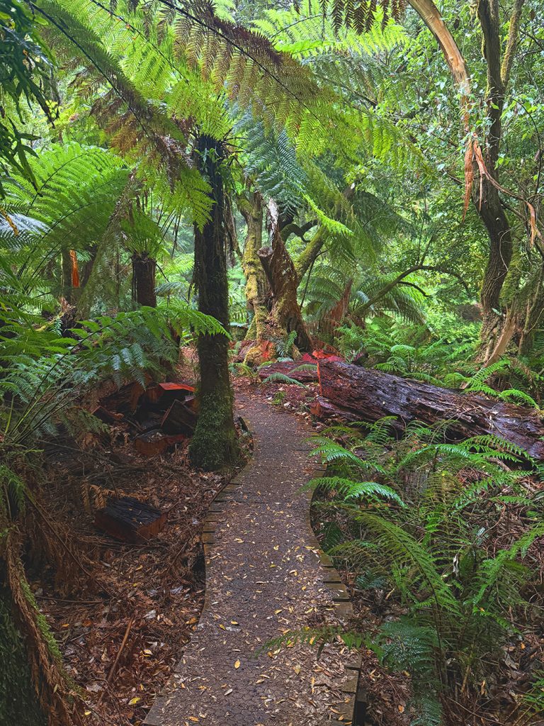 Am Nachmittag, auf dem Weg zum nächsten Free Camp, entdecken wir ganz spontan noch einen kleinen Rundweg am Straßenrand: den Weldborough Pass Rainforest Walk. Der Weg ist etwa 1 km lang, dauert ungefähr 15–20 Minuten und führt durch dichten Regenwald mit Farnen, Moos und riesigen Bäumen. Absolut empfehlenswert – kurz, intensiv und wunderschön.