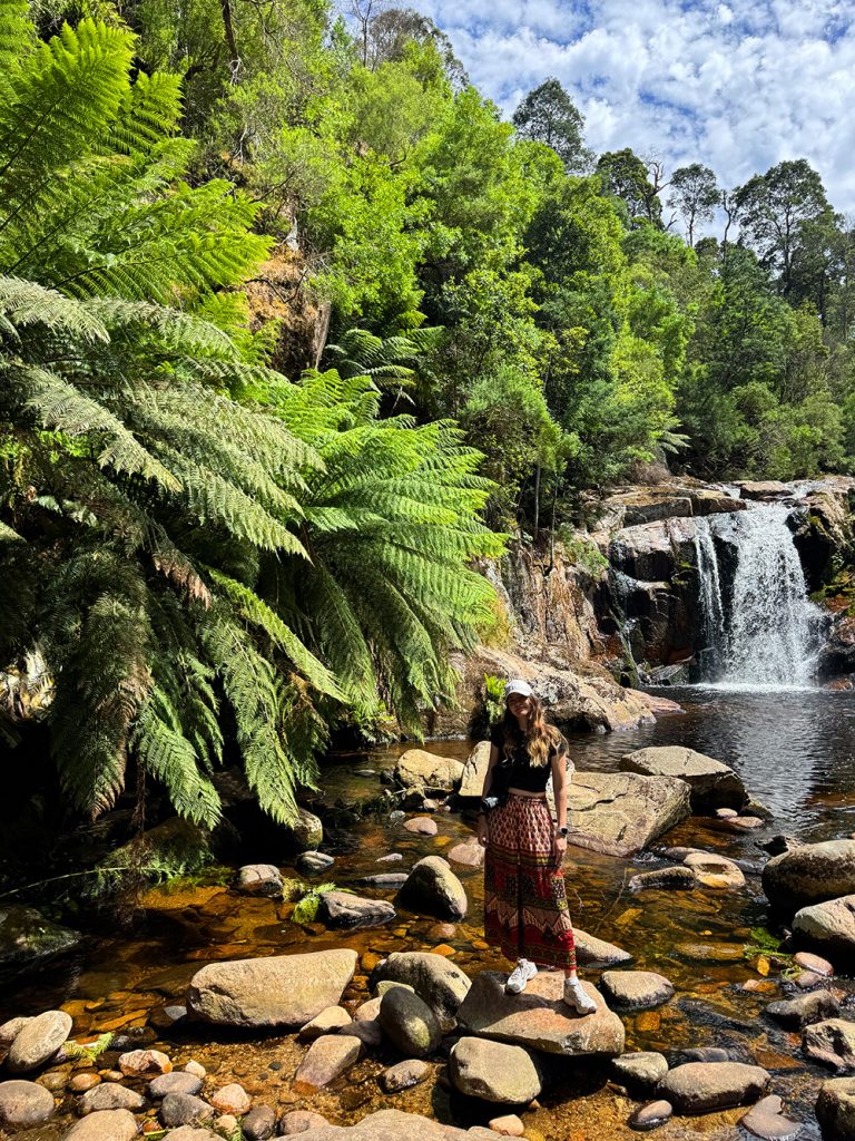 Gegen Mittag geht es dann weiter. Endlich fahren wir ins Landesinnere. Unser erster Stopp sind die Pyengana Falls.