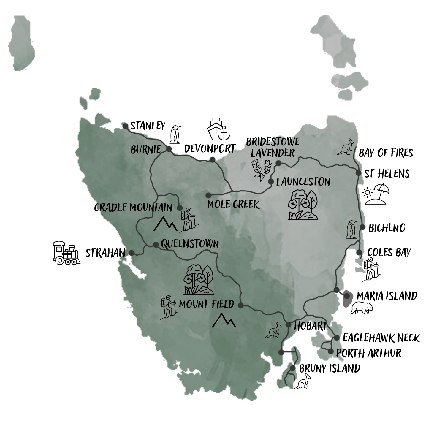 Der Norden ist ideal für Reisende, die Ruhe, Natur und entspanntes Entdecken suchen. Für alle, die gerne unterwegs sind, ohne ständig den nächsten Programmpunkt im Blick zu haben: Roadtrips, Wanderungen, kleine Hafenstädte, gutes regionales Essen. Perfekt für Individualisten, Naturliebhaber und Genießer, die Tasmanien lieber langsam erleben.