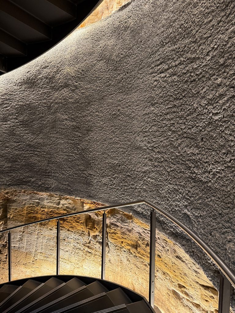 Das Museum ist eines der ungewöhnlichsten, die ich je besucht habe. Es wurde direkt in den Felsen am Derwent River hineingebaut. Von außen wirkt das Gebäude fast unscheinbar, aber innen geht es Stockwerk für Stockwerk tief in den Untergrund. Beton, dunkle Gänge, offene Räume, Licht und Schatten – allein die Architektur fühlt sich wie Kunst an. Der Bau war technisch extrem aufwendig, da große Teile aus dem massiven Sandstein herausgeschnitten wurden. Man bewegt sich wie durch eine Höhle, ohne klassische Museumsführung, ohne feste Richtung.