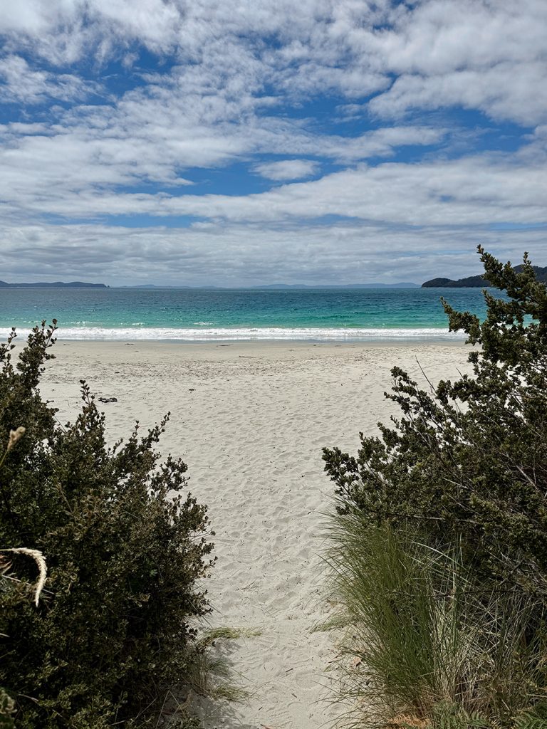 Anschließend fahren wir weiter Richtung Norden zur Bay of Fires. Hier gibt es viele kostenfreie Stellplätze, und wir haben Glück und schnappen uns einen davon. Das Wetter ist perfekt für einen Strandtag: 30 Grad, Sonne, kaum Wind. Das Meer leuchtet, der Strand ist überwältigend schön – einer der schönsten, die ich je gesehen habe. In solchen Momenten merke ich wieder, wie viel Australien zu bieten hat.